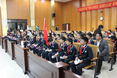 该院以“请进来”和“走出去”相结合,加强法治宣传,不断深化司法公开和便民利民举措。当天下午,天等法院请进城关小学85名师生代表,在该院党组成员、副院长宁敬森的带领下,全体师生先后参观了该院家事法庭、廉政文化长廊、廉政文化室,并在该院第三法庭进行了模拟开庭。在模拟开庭环节,学生们兴致勃勃,纷纷踊跃参加,扮演了审判长、审判员、人民陪审员、原告、被告、代理人等角色。最后,全体师生到庭审现场,观摩该院行政庭正在审理的一起交通事故纠纷案件,零距离感受司法的公正、公开。